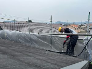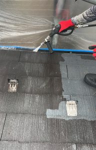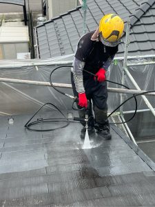屋根の塗装もあるので高圧洗浄でしっかりと洗い流していきますが、