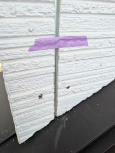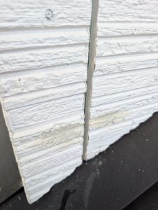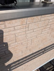 クラックが入ってしまっている部分も合わせて外壁用のパテ材で補修をしていきます