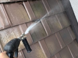 屋根瓦も汚れが気になったので、一緒に洗っておきます