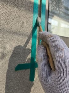 外壁下地がモルタルでできているので、クラック箇所も馴染むように埋めてからぼかしていきます