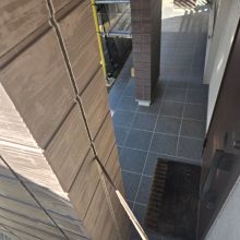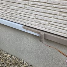 S様より外壁の相談をいただいて現状を見させていただくと、ベランダから出ている樋周辺のサイディングが捲れてしまっている状態になっていました