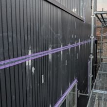 外壁の一番上の部分についている笠木が隙間なく外壁に密着する形状で作られており、雨水が吸い上げてしまう状態だったのを隙間を作ることによって今後の対策をしていきます